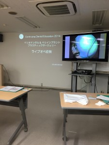 幸せそうなお父さん、お母さんを横目に歯周組織再生療法セミナー。